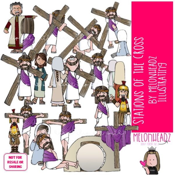 Stations of the Cross clip art Crucifixion clip art Jesus clip art Bible clip art COLORED Version: This illustrated set contains all of the clip art images as shown in the preview picture. COLORED illustrations only.