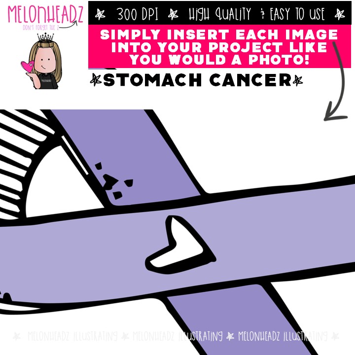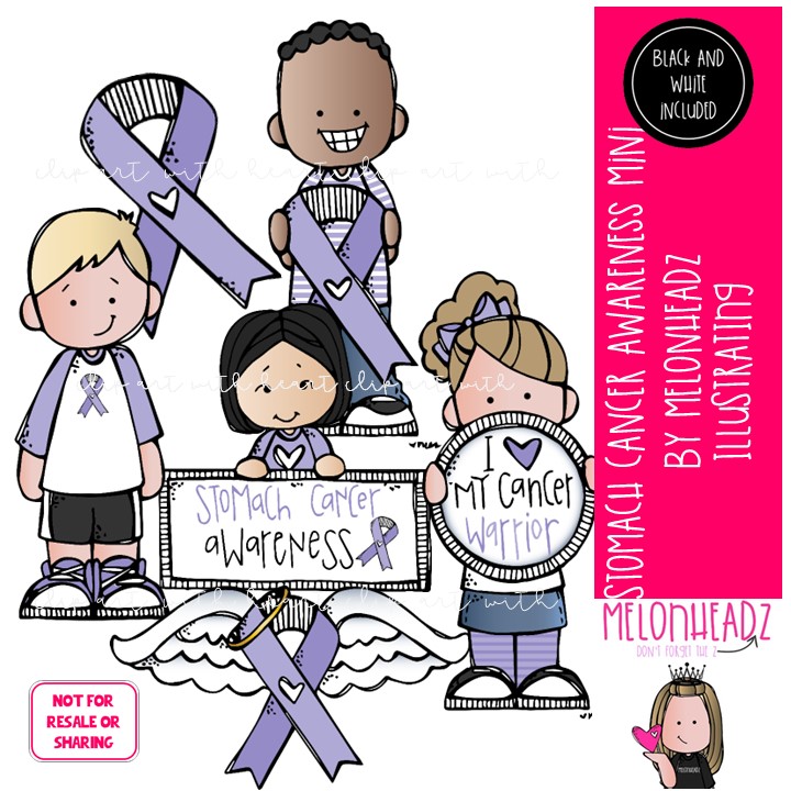 Stomach Cancer clip art, Awareness, Ribbon MINI: This illustrated set contains all of the clip art images as shown in the preview picture. COLORED and BLACK AND WHITE illustrations included.