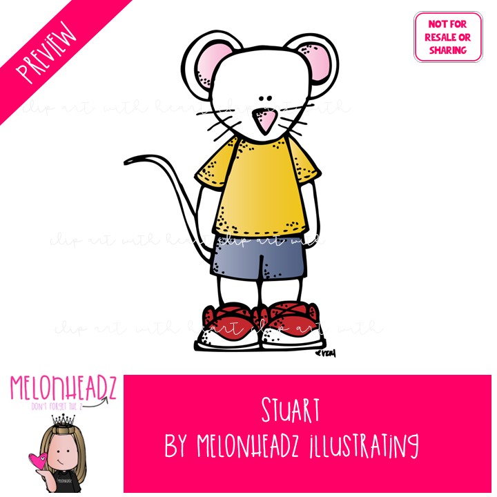 Stuart clip art, mouse, literature, book companion COLORED Version: This illustrated set contains all of the clip art images as shown in the preview picture. COLORED illustrations included.