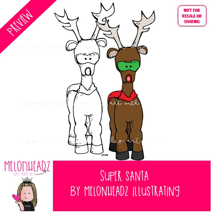 Super Santa clip art, Christmas clip art, Superhero clip art COMBO PACK: This illustrated set contains all of the clip art images as shown in the preview picture. COLORED and BLACK AND WHITE illustrations included.