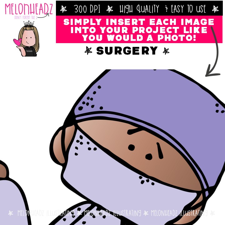 Surgery clip art, Medical clip art, Doctor clip art COLORED Version: This illustrated set contains all of the clip art images as shown in the preview picture. COLORED and BLACK AND WHITE illustrations included.