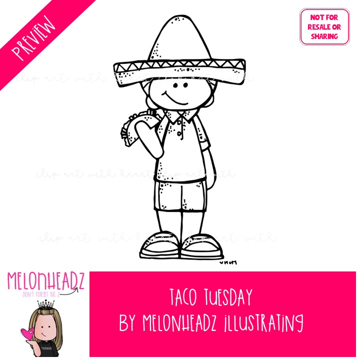 Taco Tuesday clip art Food clip art BLACK AND WHITE: This illustrated set contains all of the clip art images as shown in the preview picture. BLACK AND WHITE illustrations included.