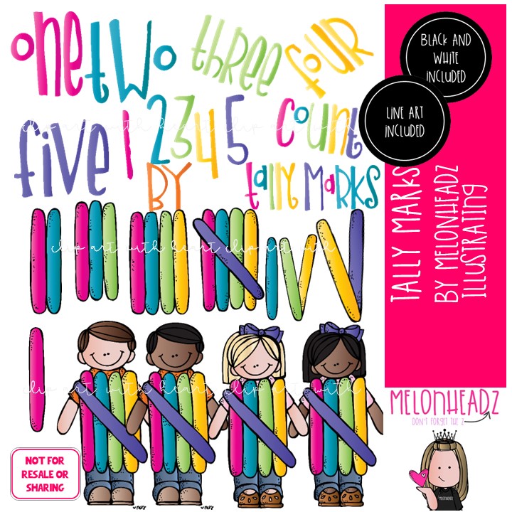 Tally Marks clip art, Math clip art COMBO PACK: This illustrated set contains all of the clip art images as shown in the preview picture. COLORED, BLACK AND WHITE and LINE ART illustrations included.