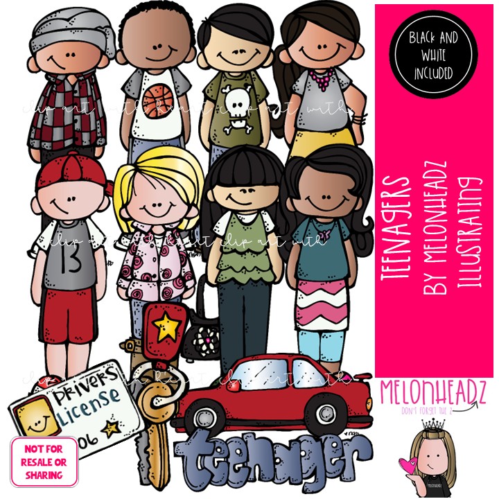 Teenagers clip art, Big Kid clip art COMBO PACK: This illustrated set contains all of the clip art images as shown in the preview picture. COLORED and BLACK AND WHITE illustrations included.