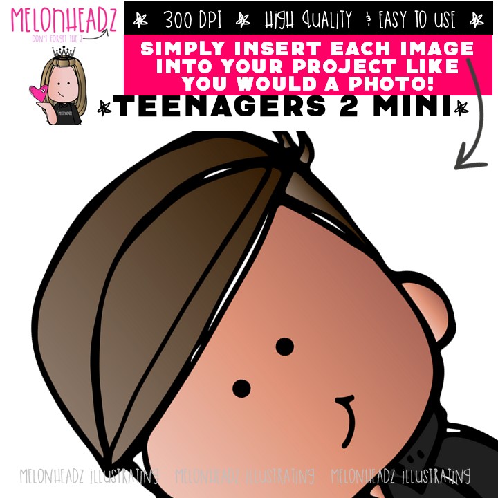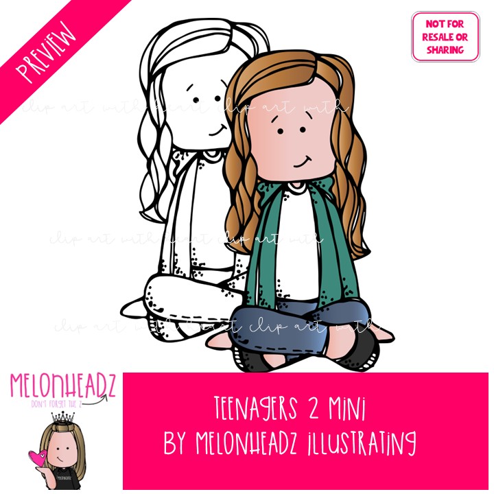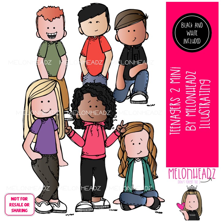 Teenagers clip art 2, Big Kids clip art Mini: This illustrated set contains all of the clip art images as shown in the preview picture. COLORED and BLACK AND WHITE  illustrations included.