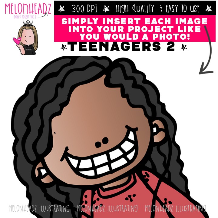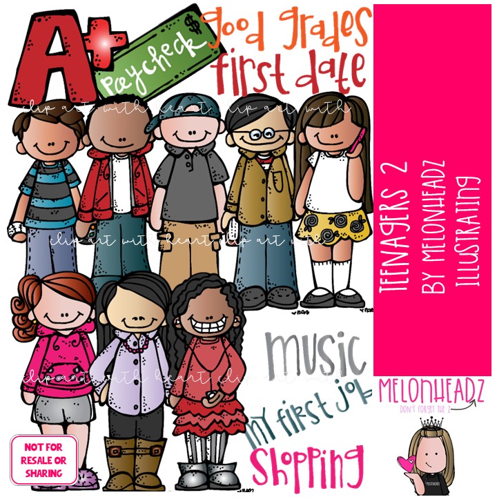 Teenagers clip art 2, Big Kids clip art COLORED Version: This illustrated set contains all of the clip art images as shown in the preview picture. COLORED illustrations included.