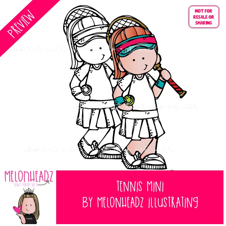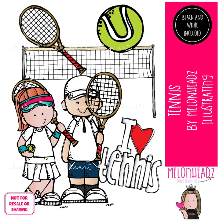 Tennis clip art, sports Mini: This illustrated set contains all of the clip art images as shown in the preview picture. COLORED and BLACK AND WHITE illustrations included.