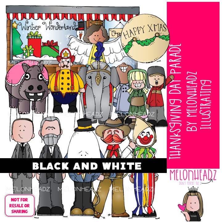 Thanksgiving Day Parade clip art, Ballon clip art BLACK AND WHITE: This illustrated set contains all of the clip art images as shown in the preview picture. BLACK AND WHITE illustrations included.