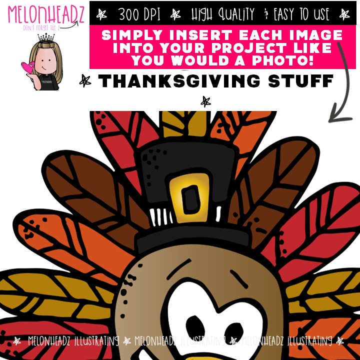 Thanksgiving Stuff clip art, Turkey clip art COMBO PACK: This illustrated set contains all of the clip art images as shown in the preview picture. COLORED and BLACK AND WHITE  illustrations included.