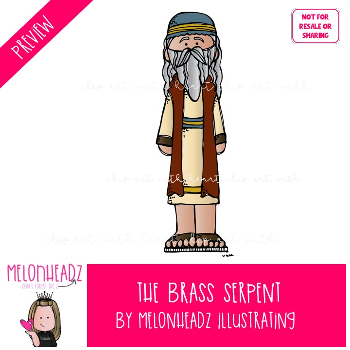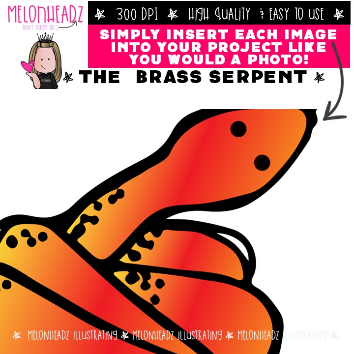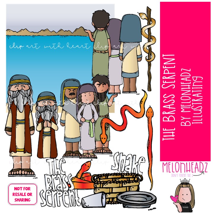 The Brass Serpent clip art, Moses, Bible COLORED Version: This illustrated set contains all of the clip art images as shown in the preview picture. COLORED illustrations included.