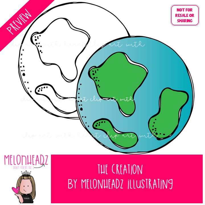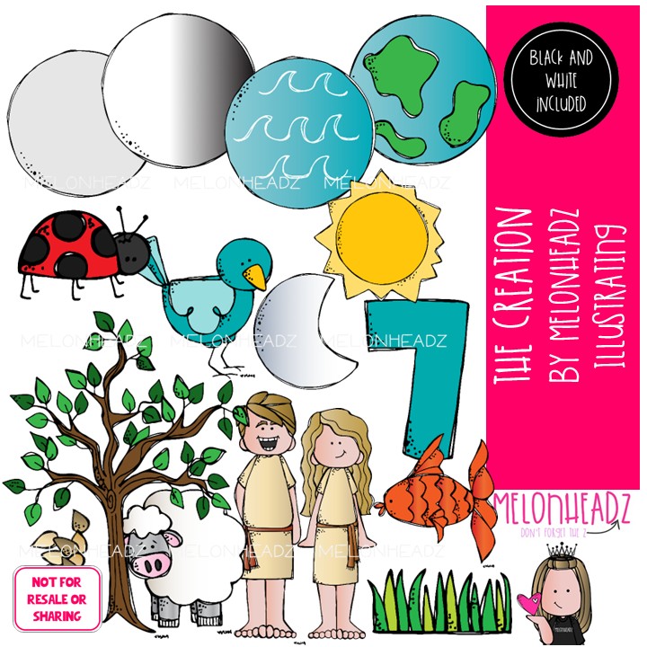 The Creation clip art, Bible clip art COMBO PACK: This illustrated set contains all of the clip art images as shown in the preview picture. COLORED and BLACK AND WHITE  illustrations included.