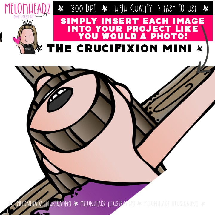 The Crucifixion clip art, Jesus, Bible, Easter MINI: This illustrated set contains all of the clip art images as shown in the preview picture. COLORED and BLACK AND WHITE illustrations included.