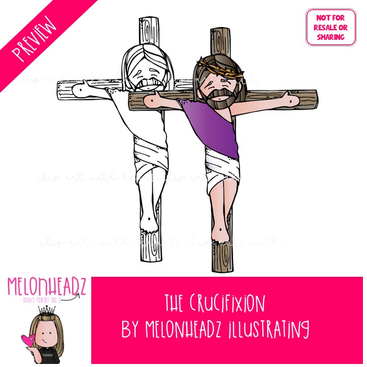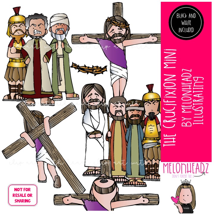 The Crucifixion clip art Jesus clip art Bible clip art Easter clip art Mini: This illustrated set contains all of the clip art images as shown in the preview picture. COLORED  and BLACK AND WHITE illustrations included.
