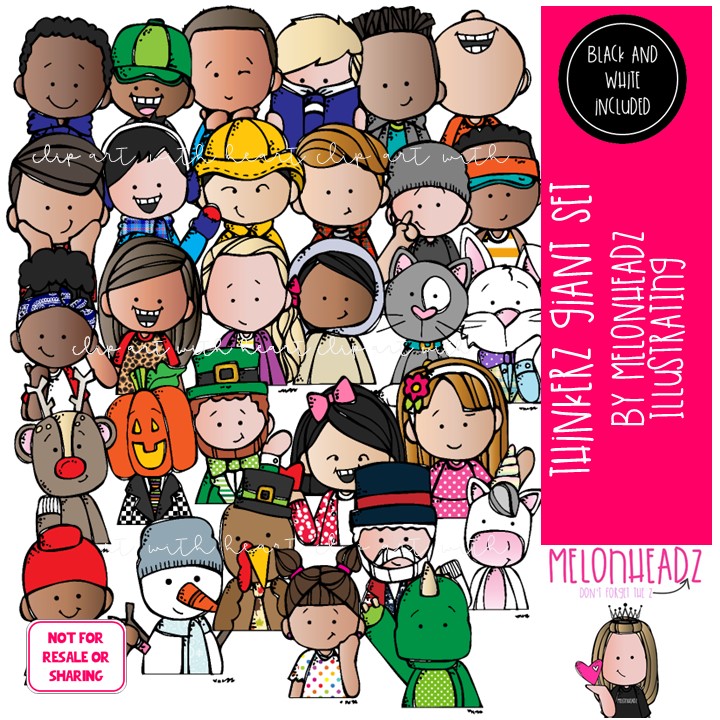 Thinkerz clip art Topper clip art GIANT set: This illustrated set contains all of the clip art images as shown in the preview picture. COLORED and BLACK AND WHITE illustrations included.