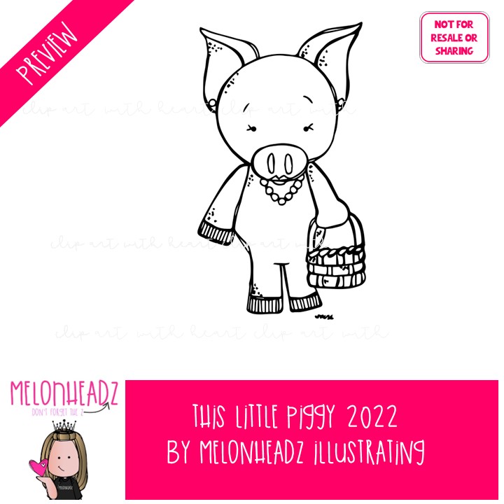 This Little Piggy clip art 2022, Nursery Rhyme clip art, Literature clip art BLACK AND WHITE
