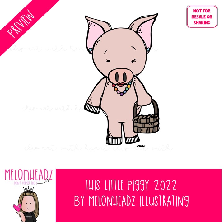 This Little Piggy clip art 2022, Nursery Rhyme clip art, Literature COLORED