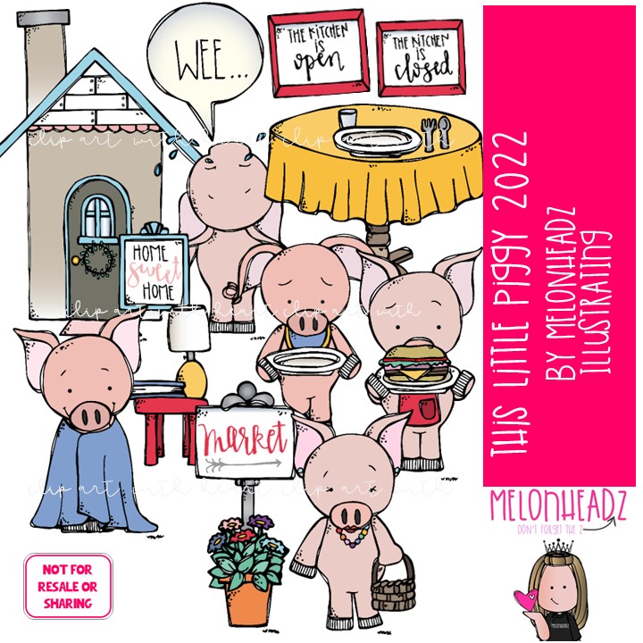 This Little Piggy clip art, Nursery Rhyme clip art, Literature clip art COLORED Version: This illustrated set contains all of the clip art images as shown in the preview picture. COLORED illustrations included.