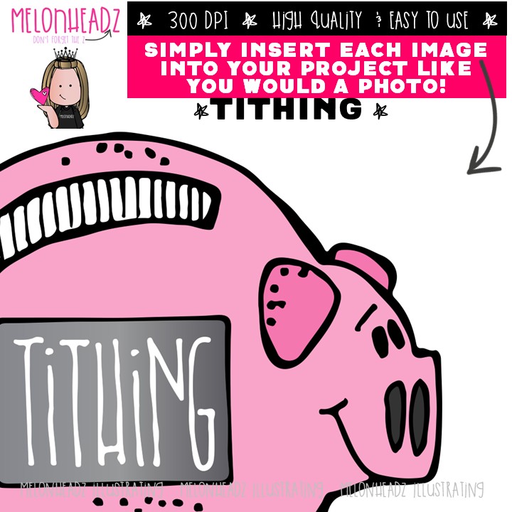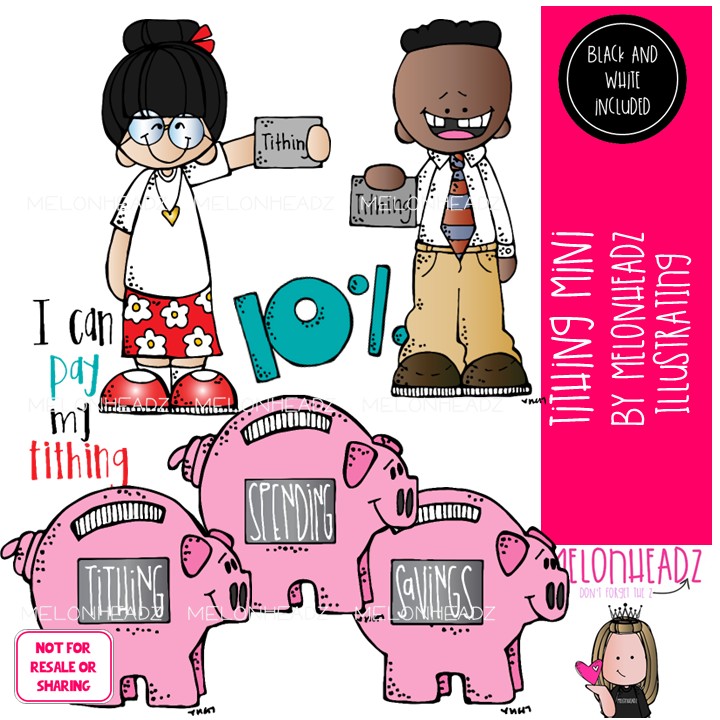Tithing clip art, LDS clip art Mini: This illustrated set contains all of the clip art images as shown in the preview picture. COLORED and BLACK AND WHITE illustrations included.