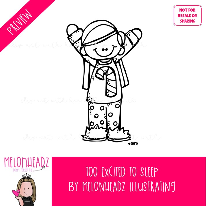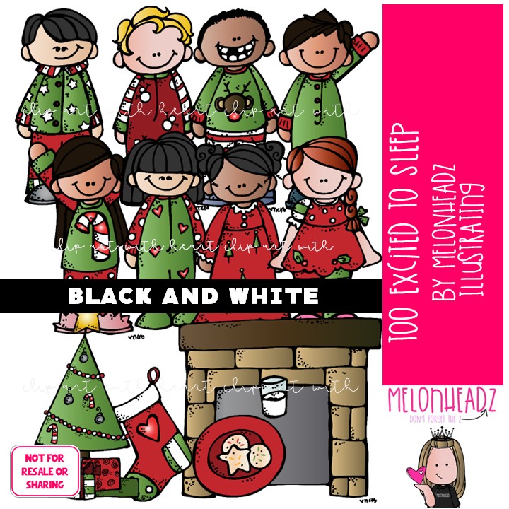 Too excited to sleep clip art, Christmas clip art, Pajama clip art BLACK AND WHITE: This illustrated set contains all of the clip art images as shown in the preview picture. BLACK AND WHITE illustrations included.
