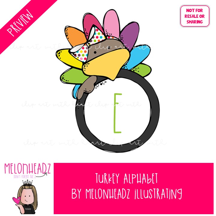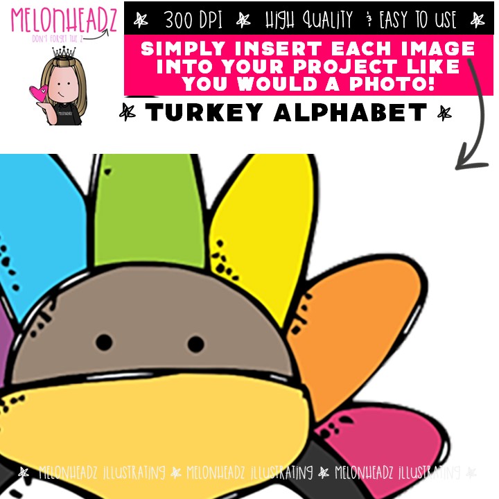 Turkey Alphabet clip art, Thanksgiving clip art COLORED Version: This illustrated set contains all of the clip art images as shown in the preview picture. COLORED illustrations included.