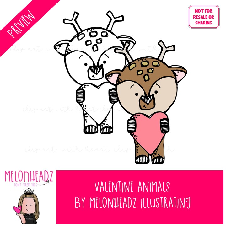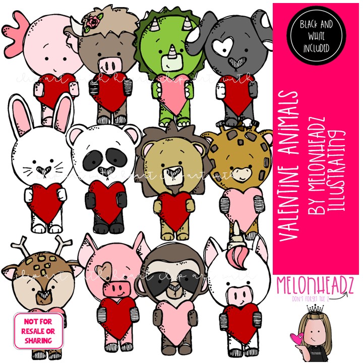 Valentine Animals clip art, Holiday clip art COMBO PACK: This illustrated set contains all of the clip art images as shown in the preview picture. COLORED and BLACK AND WHITE illustrations included.