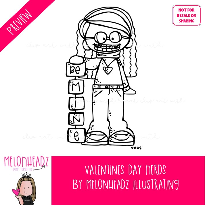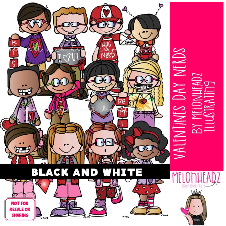 Valentines Day clip art – Nerds – BLACK AND WHITE