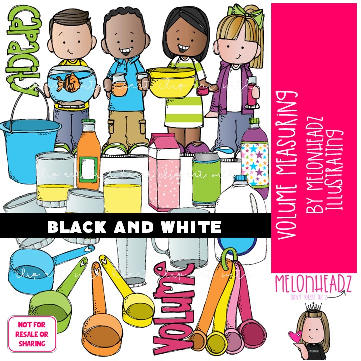 Volume Measuring clip art Math clip art Capacity clip art BLACK AND WHITE: This illustrated set contains all of the clip art images as shown in the preview picture. BLACK AND WHITE illustrations only.