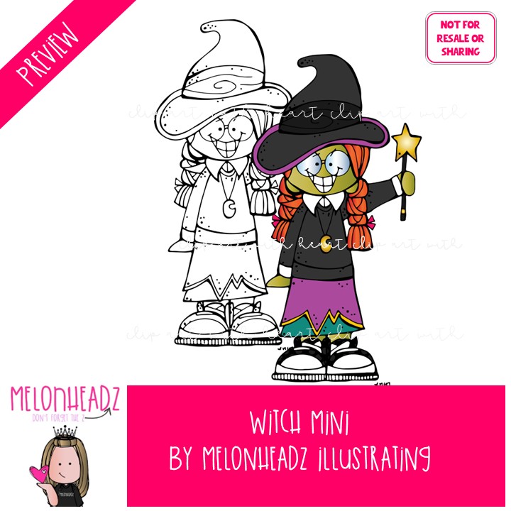 Witch clip art, Halloween Mini: This illustrated set contains all of the clip art images as shown in the preview picture. COLORED and BLACK AND WHITE illustrations included.