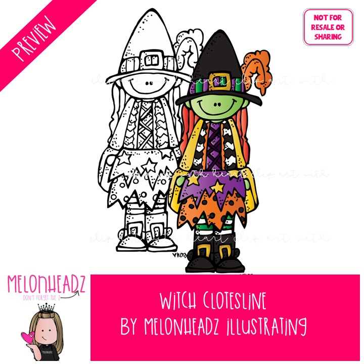 Witch Clothesline clip art, Halloween, clothing COMBO PACK