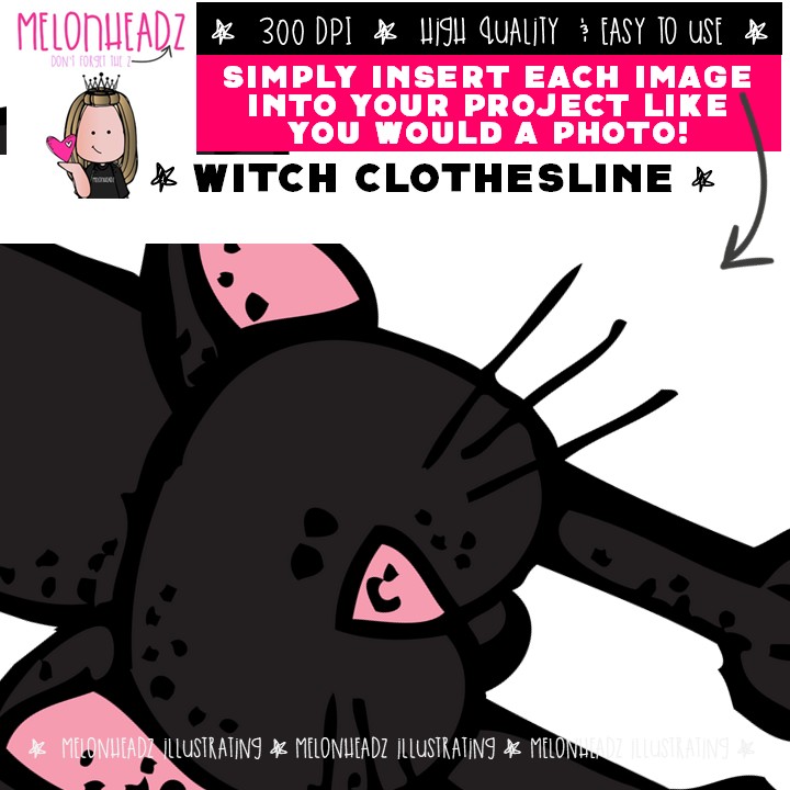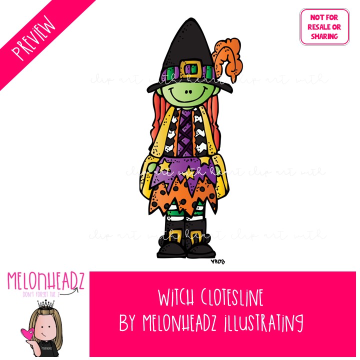 Witch Clothesline clip art, Halloween, clothing COLORED Version: This illustrated set contains all of the clip art images as shown in the preview picture. COLORED illustrations included.