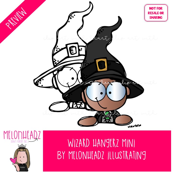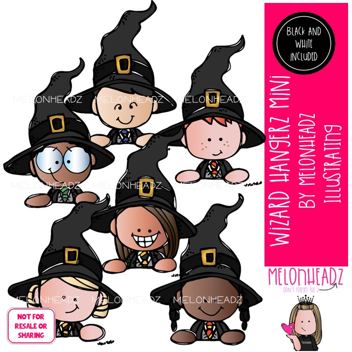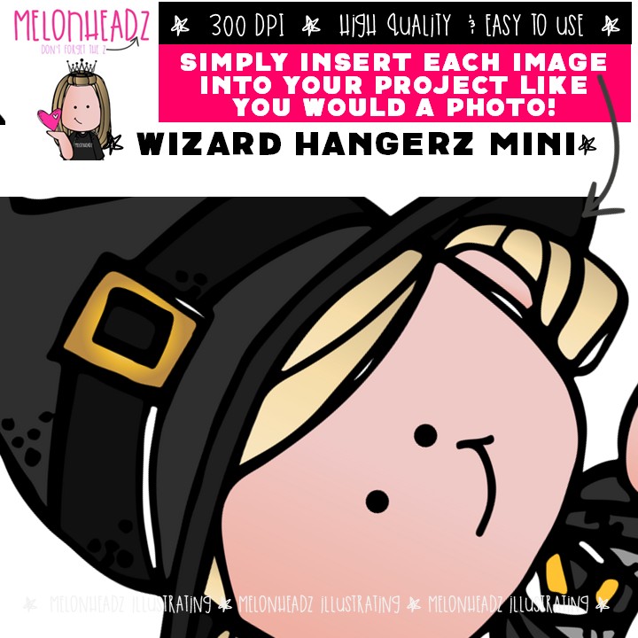 Wizard Hangerz clip art, Halloween, Toppers Mini: This illustrated set contains all of the clip art images as shown in the preview picture. COLORED and BLACK AND WHITE illustrations included.