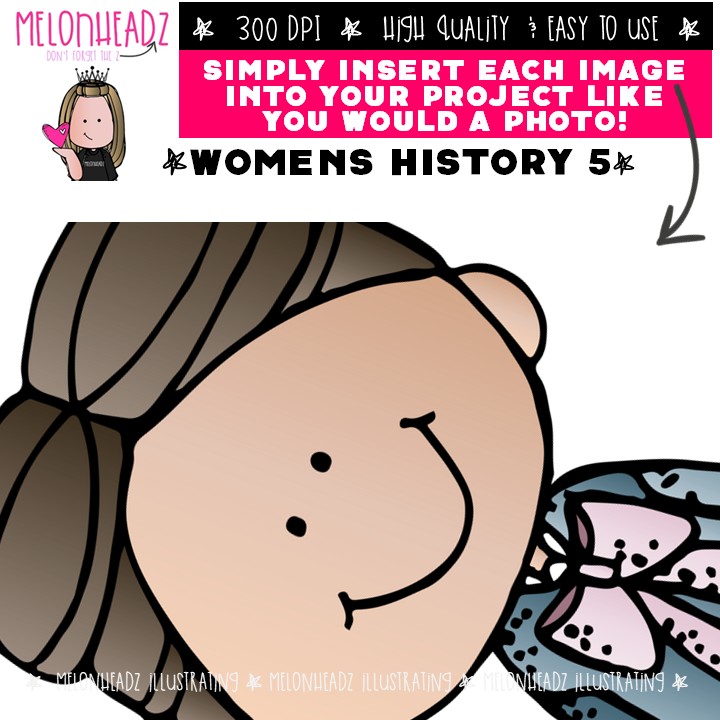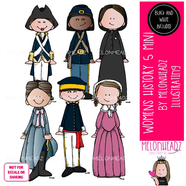 Women’s History 5 clip art, historical figure Mini: This illustrated set contains all of the clip art images as shown in the preview picture. COLORED and BLACK AND WHITE illustrations included.