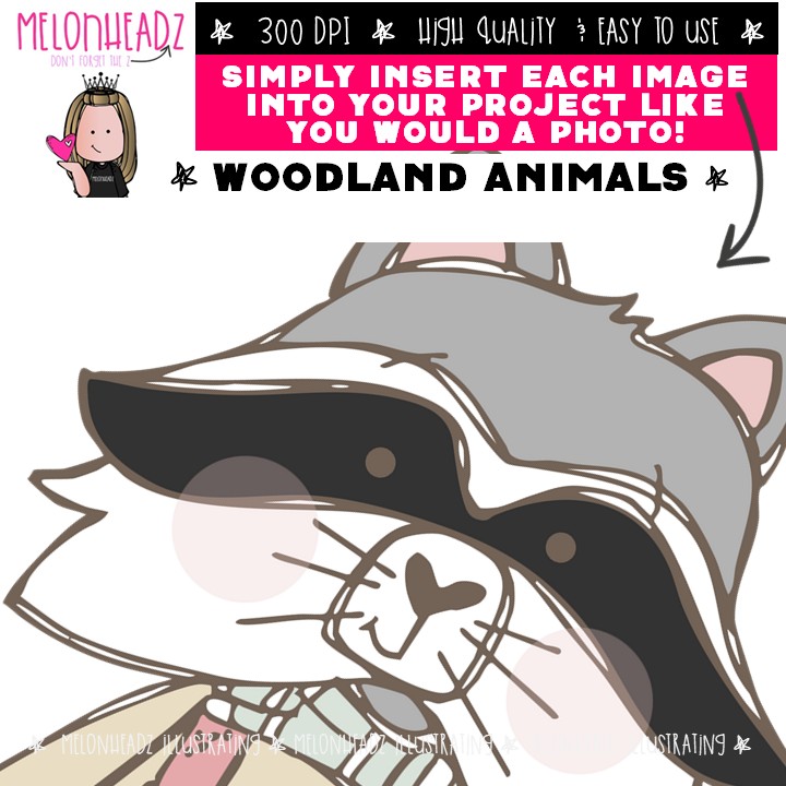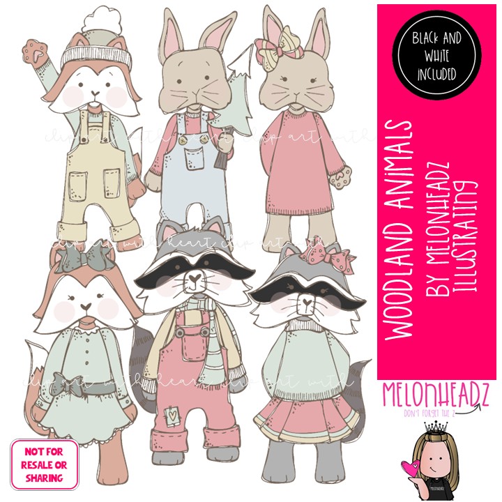 Woodland Animals clip art, Raccoon clip art, Fox clip art, Bunny clip art Mini: This illustrated set contains all of the clip art images as shown in the preview picture. COLORED and BLACK AND WHITE illustrations included.