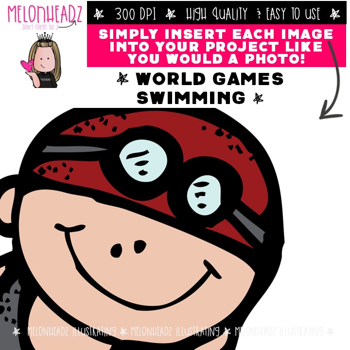World Games clip art, Swimming clip art, Sports clip art COMBO PACK: This illustrated set contains all of the clip art images as shown in the preview picture. COLORED and LINE ART illustrations included.