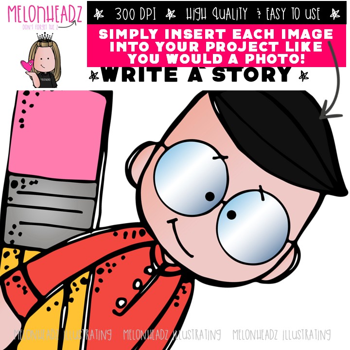 Write a story clip art, Writing clip art Mini: This illustrated set contains all of the clip art images as shown in the preview picture. COLORED and BLACK AND WHITE illustrations included.