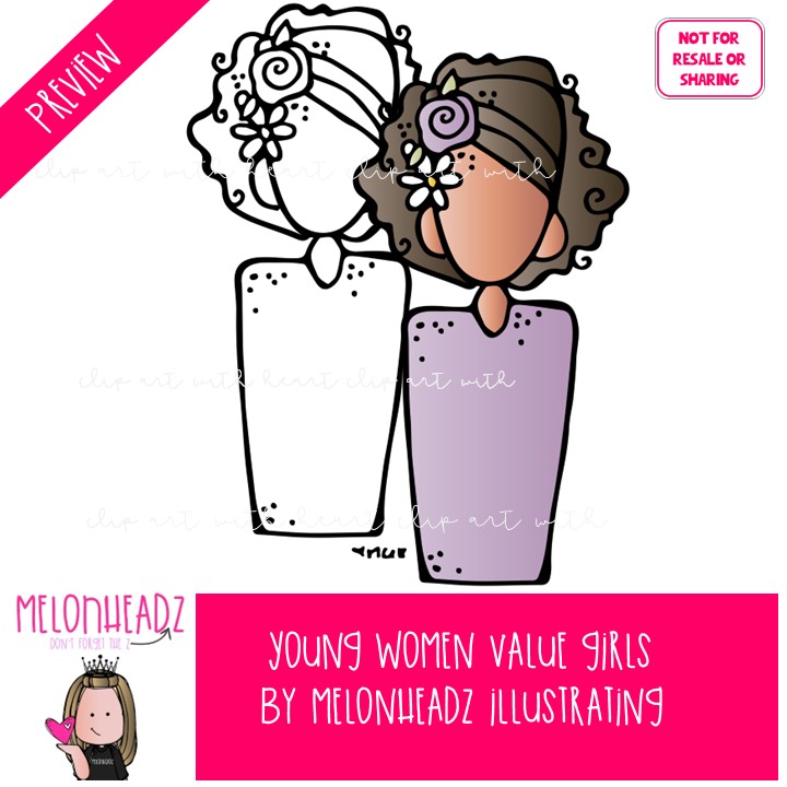 Young Women Value Colors clip art, No Face, LDS Mini: This illustrated set contains all of the clip art images as shown in the preview picture. COLORED and BLACK AND WHITE illustrations included.