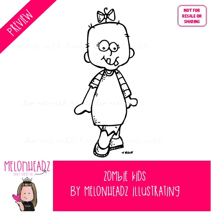Zombie clip art, Halloween clip art, Kids clip art BLACK AND WHITE: This illustrated set contains all of the clip art images as shown in the preview picture. BLACK AND WHITE  illustrations included.